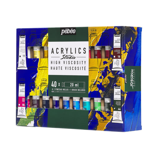 Assortment of 10 fine quality water paints, with a matt-satin finish, accompanied by a brush.