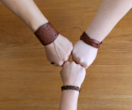 The kit will teach you how to use pricking irons, tie a sliding knot, “braid”, and treat leather. With the tools provided, you can make your bracelets completely unique, or choose from the many decoration designs we’ve created.